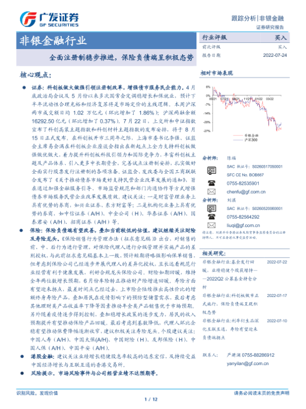 【广发证券】【20220724】非银金融行业:全面注册制稳步推进,保险负债端呈积极态势-12页 行业研究