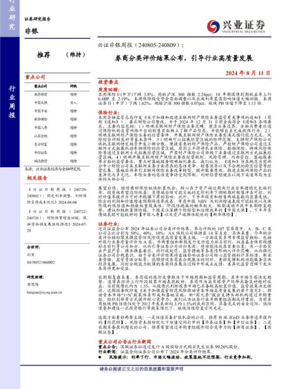 【兴业证券】【20240811】非银行业周报:券商分类评价结果公布,引导行业高质量发展-16页 行业研究
