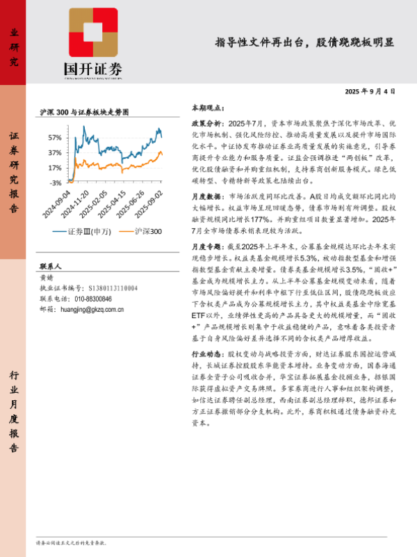 【国开证券】【202409】非银金融行业研究:指导性文件再出台,股债跷跷板明显-21页 证券期货研究报告