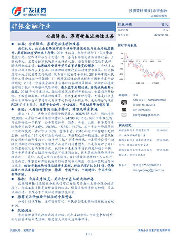 【广发证券】【20190106】非银金融行业投资策略周报:全面降准,券商受益流动性改善-11页 行业研究