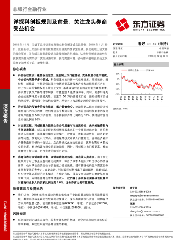【东方证券】【20190217】非银行金融行业:详探科创板规则及前景,关注龙头券商受益机会-27页 行业研究
