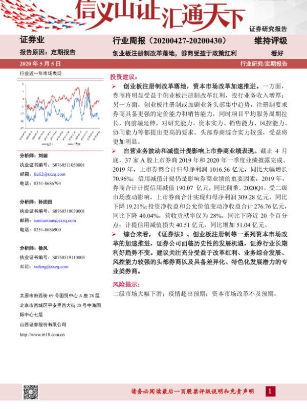【山西证券】【20200505】证券业行业周报:创业板注册制改革落地,券商受益于政策红利-14页 行业研究