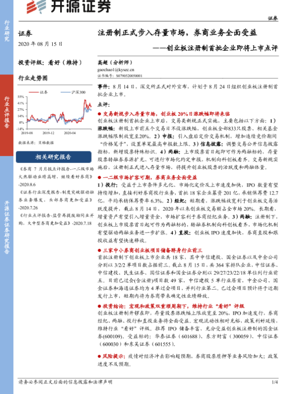 【开源证券】【20200815】创业板注册制首批企业即将上市点评-4页 证券期货研究报告