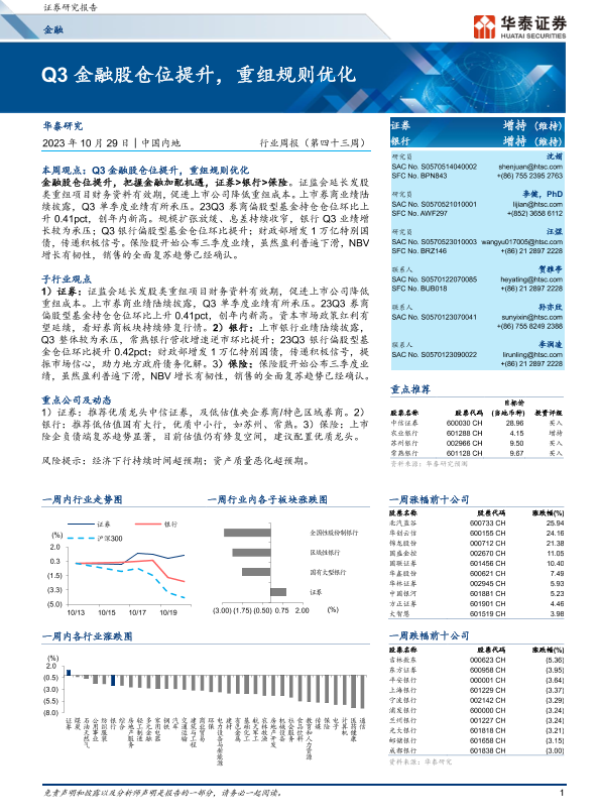 【华泰证券】【20231029】Q3金融股仓位提升,重组规则优化-36页 行业研究