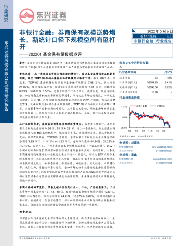 【东兴证券】【20220506】非银行金融2022Q1基金保有量数据点评-9页 行业研究