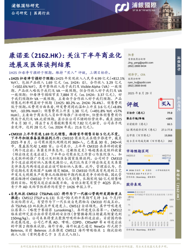 【浦银国际】【20250829】康诺亚-B-02162.HK-关注下半年商业化进展及医保谈判结果-8页 证券期货研究报告