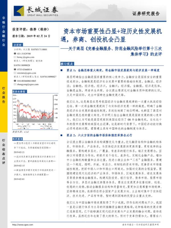 【长城证券】【20190224】关于高层《完善金融服务、防范金融风险举行第十三次集体学习》的点评-5页 行业研究