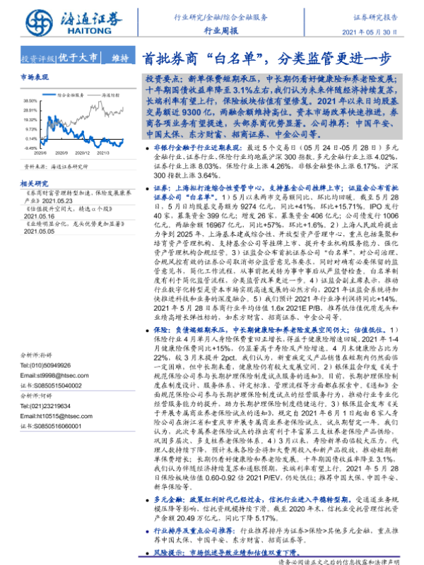【海通证券】【20210530】综合金融服务行业周报:首批券商“白名单”,分类监管更进一步-10页 行业研究