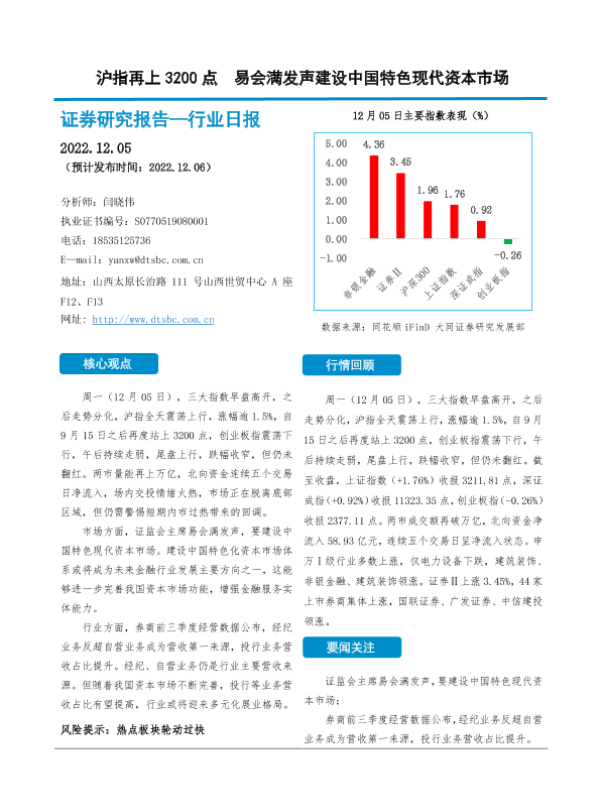 【大同证券】【20221205】沪指再上3200点 易会满发声建设中国特色现代资本市场-10页 行业研究