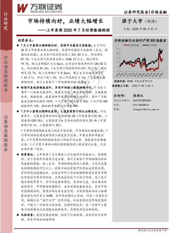 【万联证券】【20200807】上市券商2020年7月经营数据跟踪:市场持续向好,业绩大幅增长-11页 行业研究