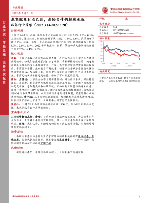 【东亚前海证券】【20220321】券商配置时点已到,寿险负债仍持续承压-10页 行业研究