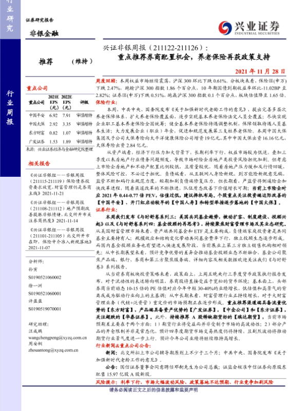 【兴业证券】【20211128】兴证非银周报:重点推荐券商配置机会,养老保险再获政策支持-15页 行业研究