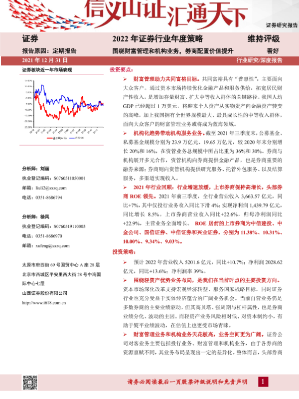【山西证券】【20211231】2022年证券行业年度策略:围绕财富管理和机构业务,券商配置价值提升-23页 行业研究