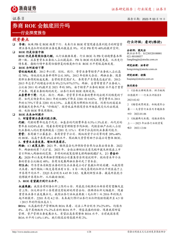 【浙商证券】【20230311】证券Ⅱ行业深度报告:券商ROE会触底回升吗-28页 行业研究