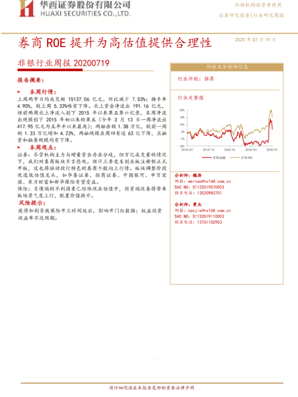 【华西证券】【20200719】非银行业周报:券商ROE提升为高估值提供合理性-15页 行业研究