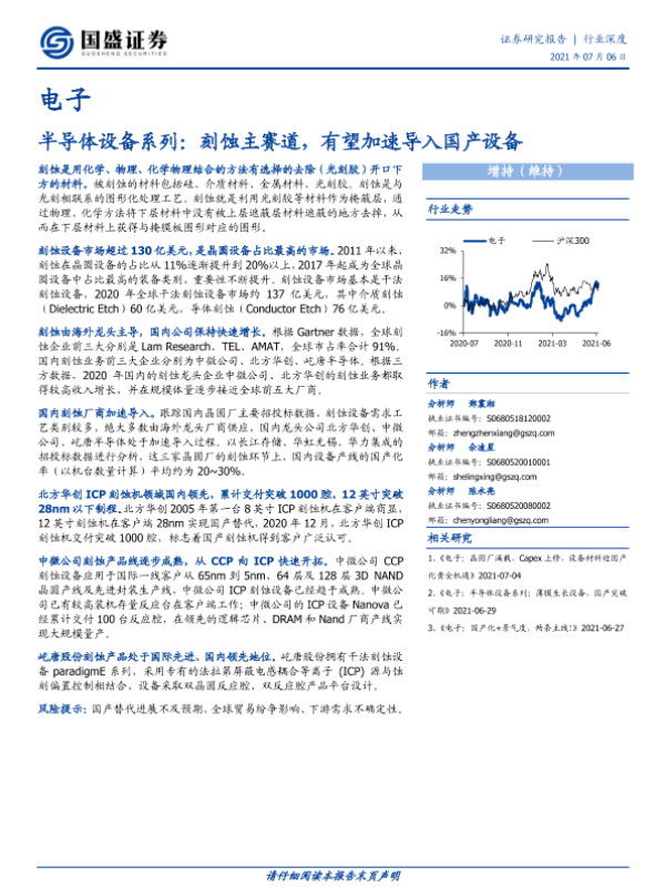 【国盛证券】【20210706】电子行业半导体设备系列:刻蚀主赛道,有望加速导入国产设备-22页 行业研究