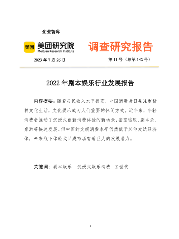 【中国文化娱乐行业协会&美团研究院】【202305】2022年剧本娱乐行业发展报告-18页 行业研究