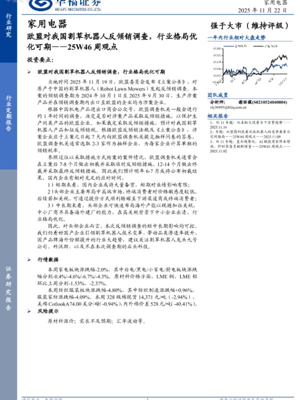 【华福证券】【202511】欧盟对我国割草机器人反倾销调查,行业格局优化可期——25W46周观点-12页 证券期货研究报告