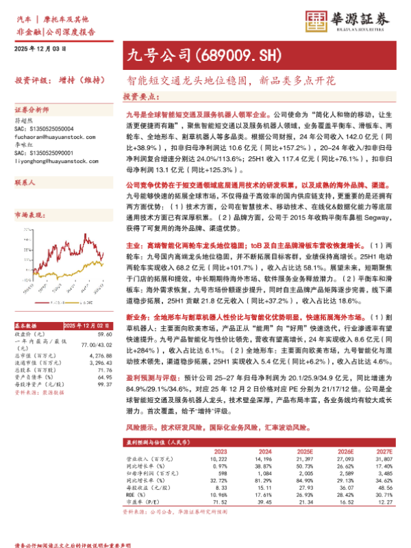 【华源证券】【202512】智能短交通龙头地位稳固,新品类多点开花-29页 证券期货研究报告