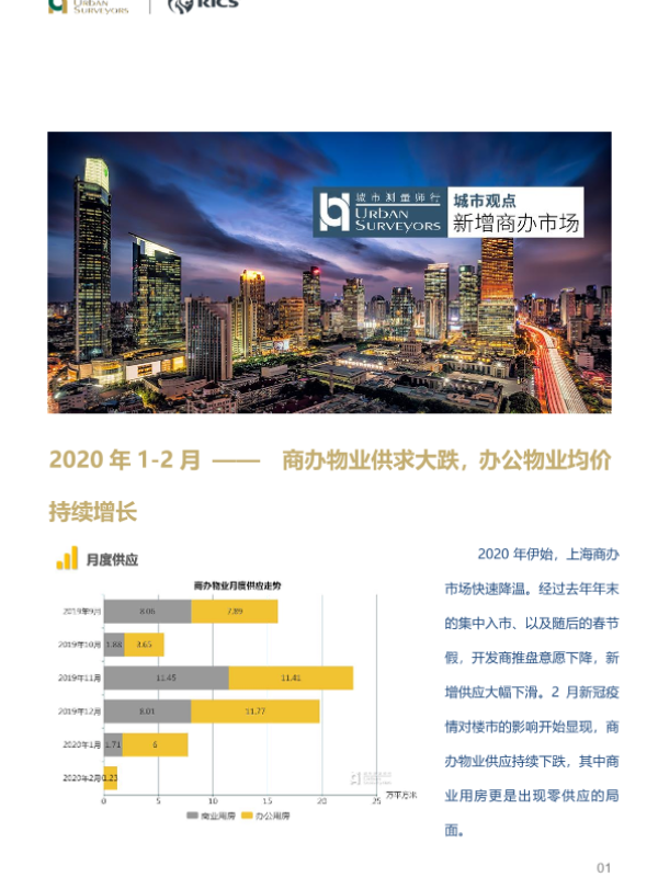 【城市测量师行】【20200323】2020年1-2月商办物业供求大跌,办公物业均价持续增长-4页 行业研究