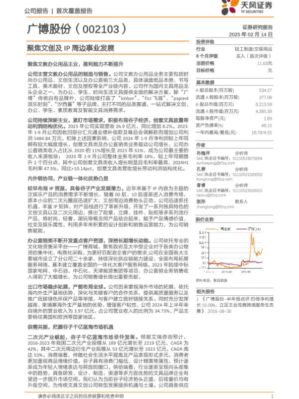 【天风证券】【20250214】广博股份(002103)聚焦文创及IP周边事业发展-18页 行业研究