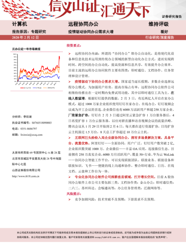【山西证券】【20200212】计算机:疫情驱动协同办公需求大增-23页 行业研究