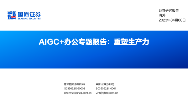 【国海证券】【20230408】科技互联网行业AIGC+办公专题报告:重塑生产力-40页 行业研究