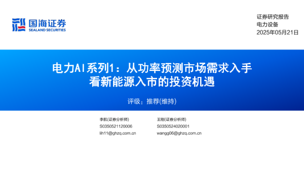 【国海证券】【20250521】电力设备行业电力AI系列1:从功率预测市场需求入手看新能源入市的投资机遇-33页 证券期货研究报告