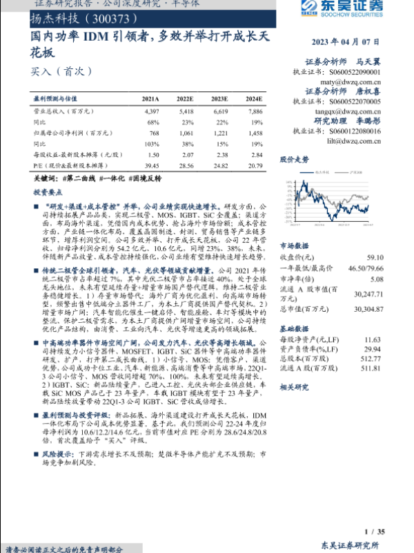 【东吴证券】【20230407】扬杰科技-国内功率IDM引领者,多效并举打开成长天花板-35页 行业研究