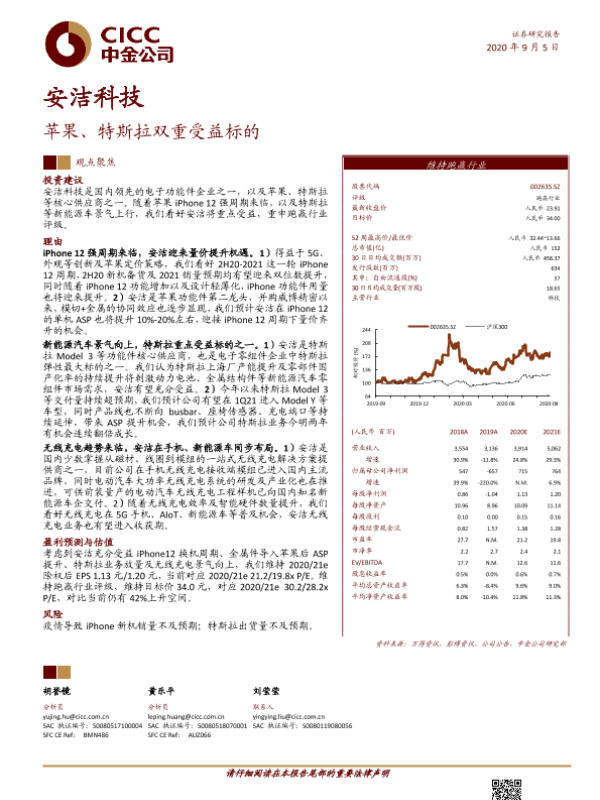 【中金公司】【20200905】安洁科技-苹果、特斯拉双重受益标的-20页 行业研究