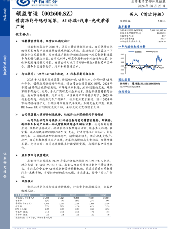 【华福证券】【20240823】领益智造-精密功能件隐形冠军,AI终端+汽车+光伏前景广阔-18页 行业研究