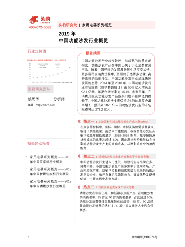【头豹研究院】【20200831】2019年中国功能沙发行业概览-41页 行业研究
