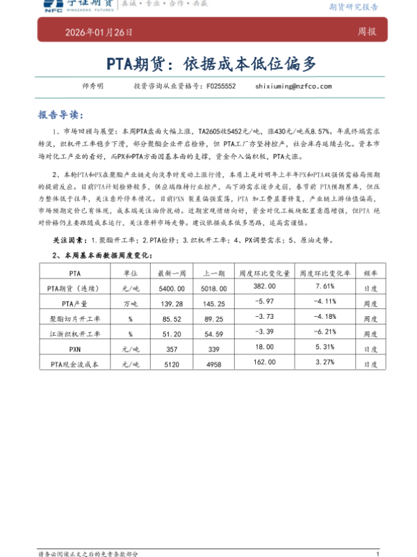 【宁证期货】【202601】PTA期货_依据成本低位偏多-7页 证券期货研究报告