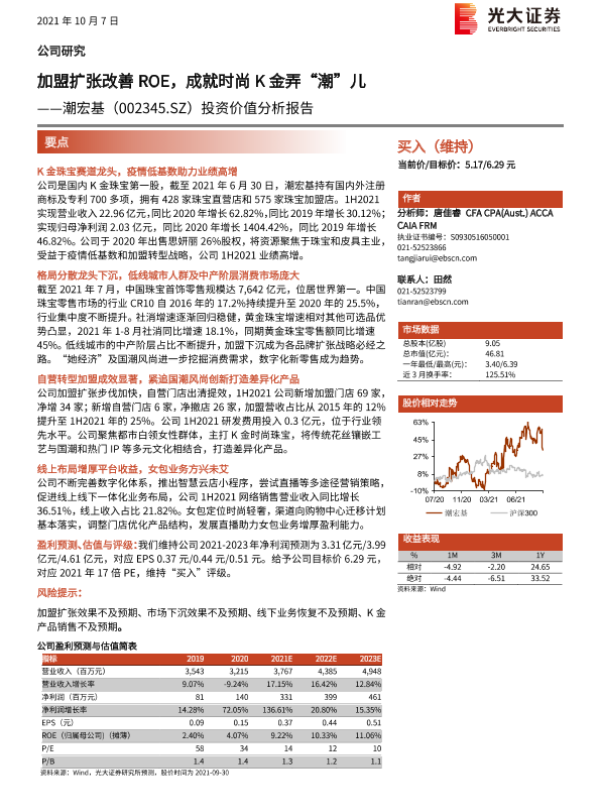 【光大证券】【20211007】潮宏基(002345.SZ)投资价值分析报告:加盟扩张改善ROE,成就时尚K金弄“潮”儿-38页 行业研究