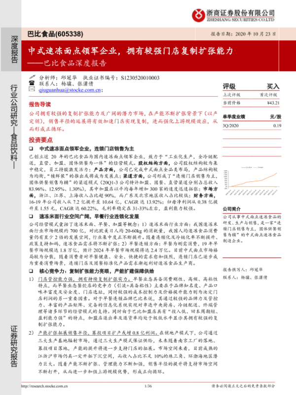 【浙商证券】【20201023】巴比食品深度报告:中式速冻面点领军企业,拥有较强门店复制扩张能力-36页 行业研究