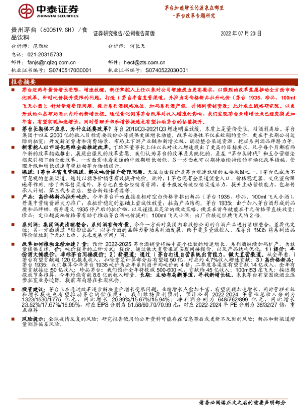 【中泰证券】【20220720】茅台改革专题研究:茅台加速增长的源泉在哪里-25页 行业研究