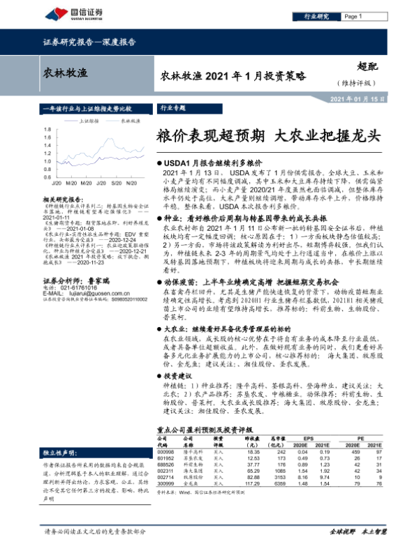 【国信证券】【20210115】农林牧渔2021年1月投资策略:粮价表现超预期 大农业把握龙头-21页 行业研究