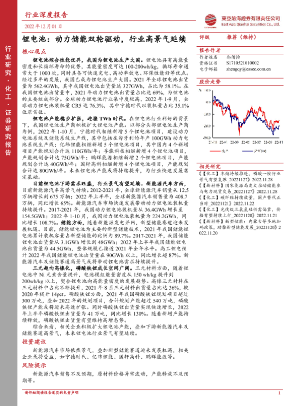【东亚前海证券】【20221201】锂电池:动力储能双轮驱动,行业高景气延续-42页 行业研究