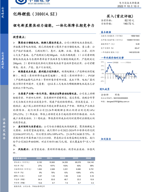 【华福证券】【20221010】亿纬锂能-锂电新星聚焦动力储能,一体化保障长期竞争力-18页 行业研究