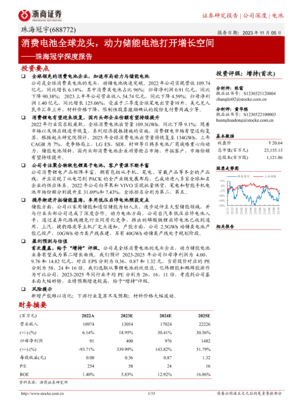 【浙商证券】【20231105】珠海冠宇深度报告:消费电池全球龙头,动力储能电池打开增长空间-33页 行业研究