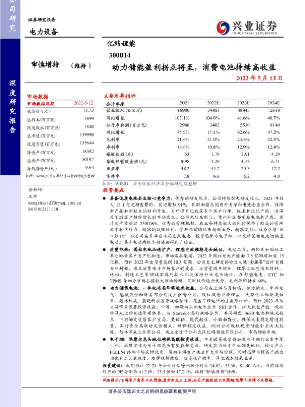 【兴业证券】【20220513】动力储能盈利拐点将至,消费电池持续高收益-49页 行业研究