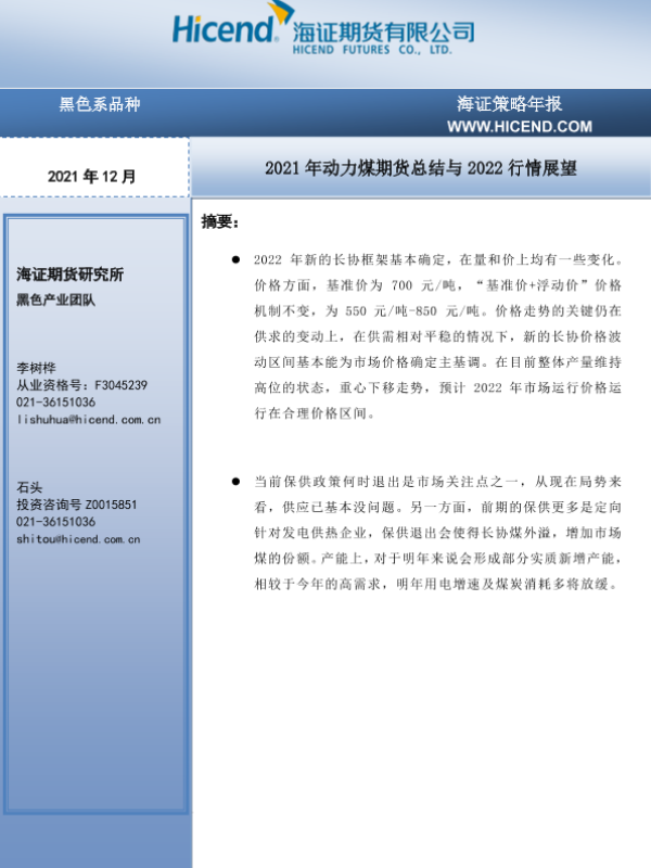 【海证期货】【20211231】2021年动力煤期货总结与2022行情展望-16页 行业研究