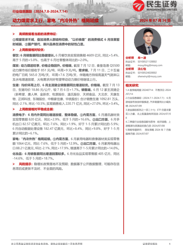 【民生证券】【20240716】行业信息跟踪:动力煤需求上行,家电“内冷外热”格局延续-23页 行业研究