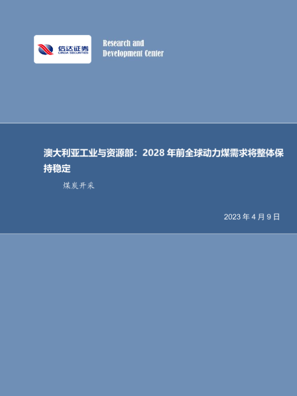 【信达证券】【20230409】澳大利亚工业与资源部:2028年前全球动力煤需求将整体保持稳定-28页 行业研究