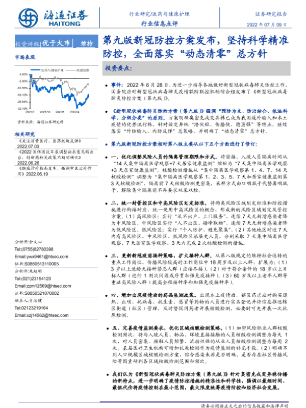 【海通证券】【20220709】第九版新冠防控方案发布,坚持科学精准防控,全面落实“动态清零”总方针-4页 行业研究