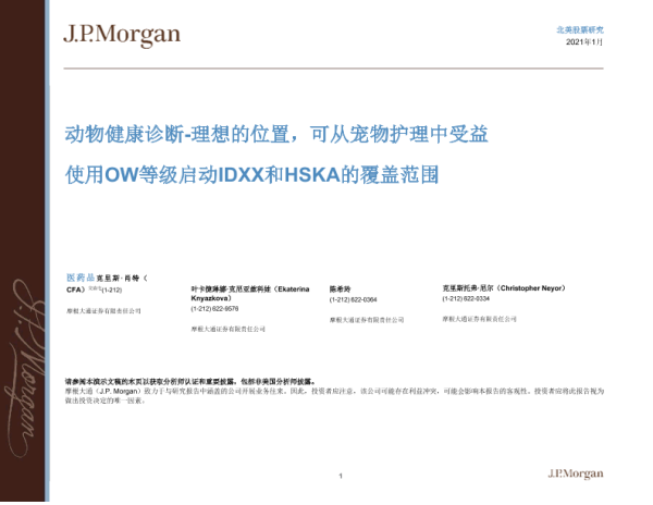 【J.P. Morgan】【2021】美股医疗保健行业动物健康诊断:受益于宠物医疗顺风的理想位置-69页 行业研究