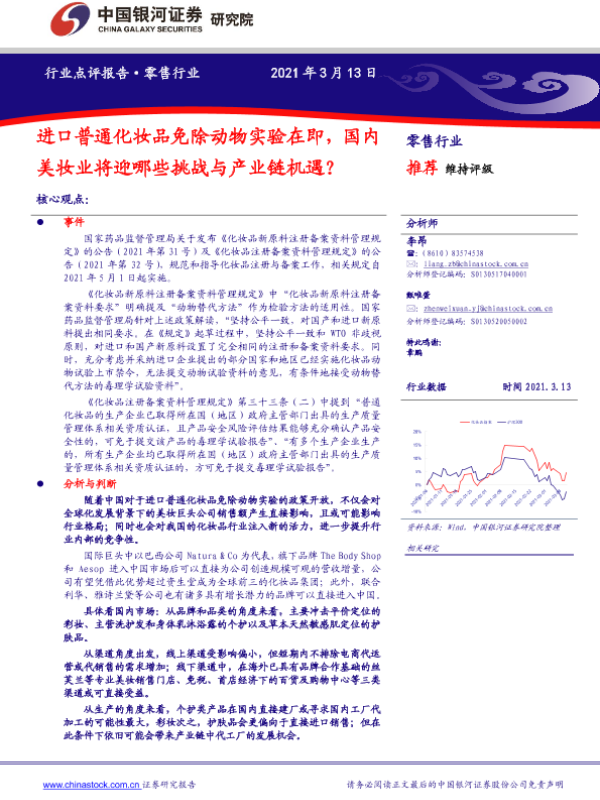 【银河证券】【20210313】进口普通化妆品免除动物实验在即,国内美妆业将迎哪些挑战与产业链机遇-7页 行业研究