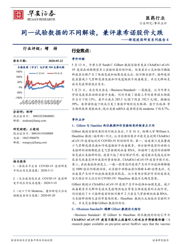 【华安证券】【20200522】同一试验数据的不同解读,兼评康希诺股价大跌-4页 行业研究