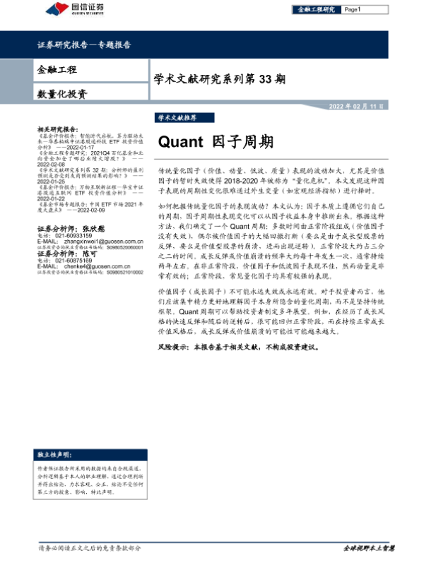 【国信证券】【20220211】学术文献研究系列第33期:Quant因子周期-16页 行业研究