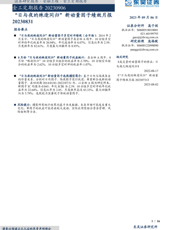 【东吴证券】【20230906】“日与夜的殊途同归”新动量因子绩效月报-16页 行业研究